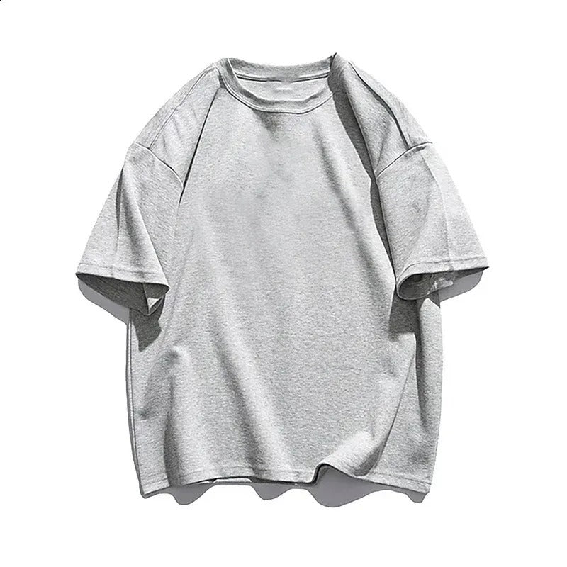 Men's Retro Oversized Cotton T-Shirt - Heavyweight Solid Color Streetwear Tee